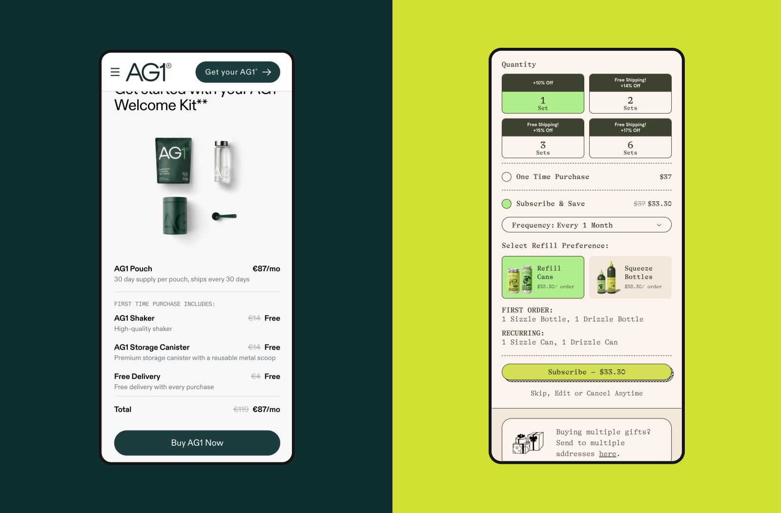 Finally, featuring pricing on other key touchpoints, such as the homepage page, as done by Athletic Greens, can significantly enhance user experience. Graza also does a great job by detailing pricing information for first and recurring orders directly in the Buy section.