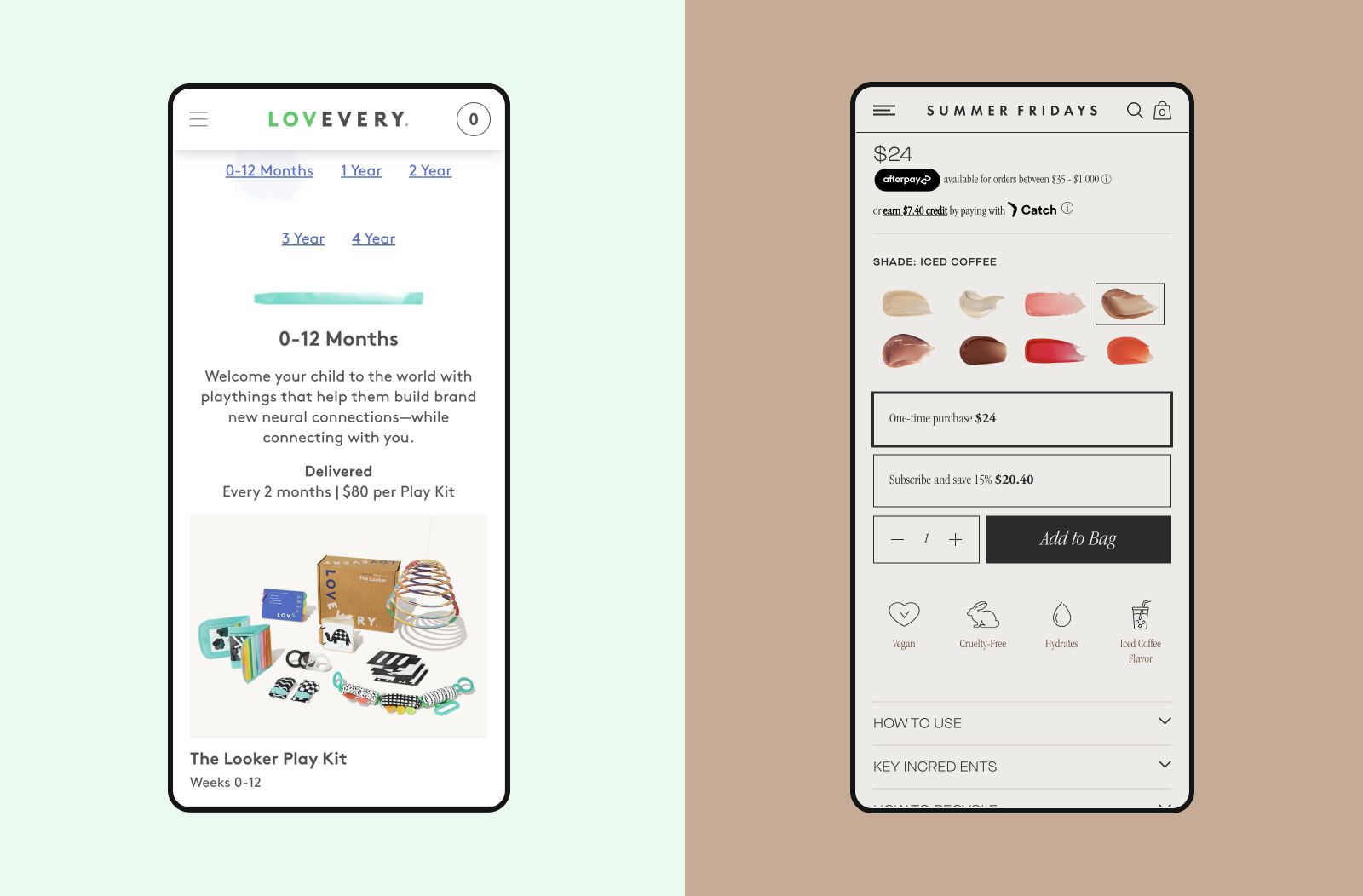 The first step is to make your pricing clearly visible. It seems simple, but you’d be surprised how many brands hide their pricing information in the product details or hard-to-spot sections of the page–see Lovevery or Summer Fridays, highlighted below, as an example.