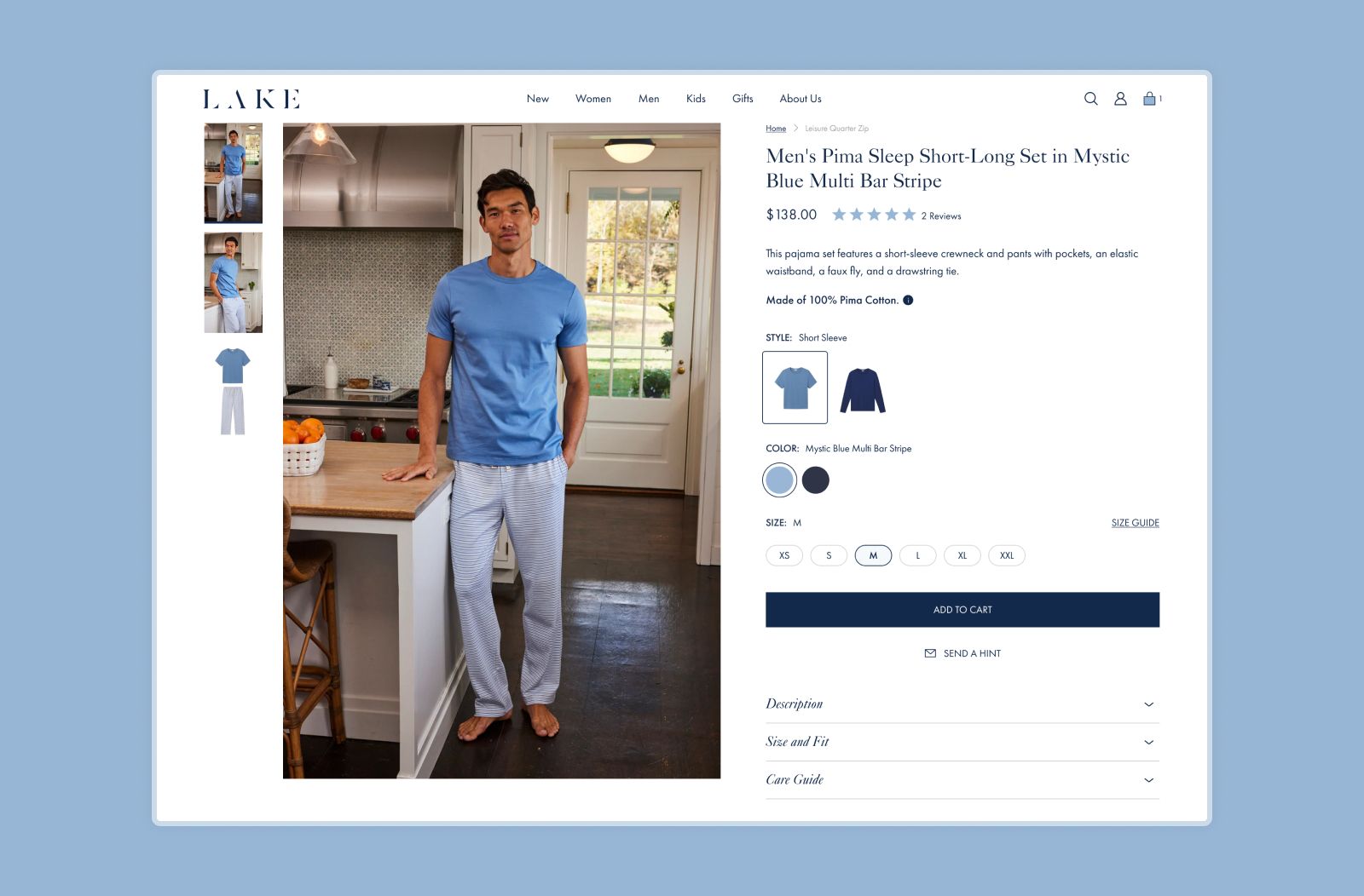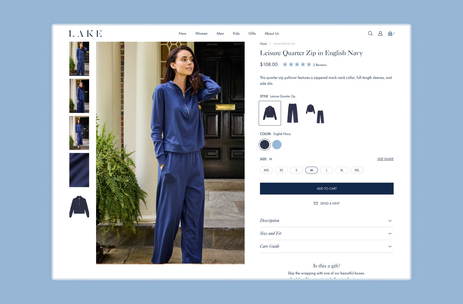 One of the options LAKE asked us to explore was a flexible way to display matching products on the product page. For example, a women's pajama set and its matching version for children are perfect for a "mommy and me" moment. While these items are designed to complement each other, they are separate products targeting different users, not variations of the same item.